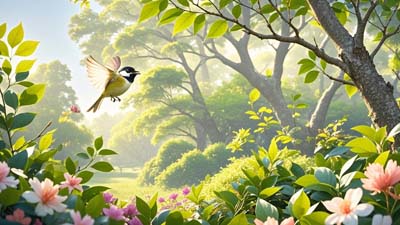 Xiǎoniǎo xiǎoniǎo yíngzhe chūntiān gēchàng.