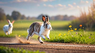 The rabbit ran fast to the destination and didn’t see the tortoise on the road. He was so