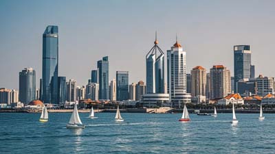 Qingdao is located on the southern edge of the Shangdong Peninsula with the Yellow Sea to the east. Warm in winter and cool in summer, it is a very clean, beautiful coastal city. The 2008 Olympic sailing events will be held here.