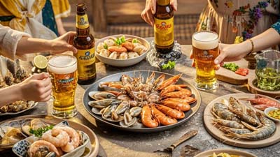 The Qingdaonese like to eat seafood and drink beer. There are all kinds of very tasty seafood. The best seasons to have seafood are spring and summer; so do come to Qingdao during these two seasons if you like seafood. There is also a famous beer – Qingdao beer. Each August, there is the “Qingdao International Beer Festival” at which you can taste beers from all over the world, and you can surely drink your fill!