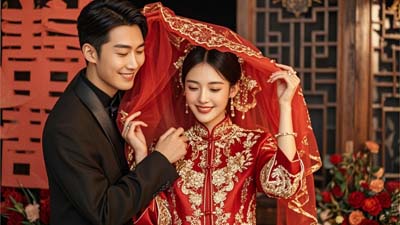 In modern China, the red veil is not a necessity at a wedding ceremony, but many young people still “选择 (xuǎnzé) choose” to hold a traditional Chinese wedding ceremony. They use the red veil not only for fun, but also because they want to have a special keepsake of their marriage day. When the groom removes the red veil, it also symbolizes that the couple has made a “勇敢的 (yǒnggǎn de) brave” vow that they will cherish and take care of each other for the rest of their lives.