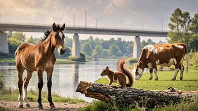 After hearing the bull’s words, the little horse ran to the riverside and was ready to cross the river. Suddenly a squirrel came from a tree and shouted to him: “Little horse! Don’t go across. Don’t go across. You will be drowning in the river.”
